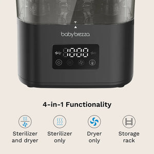 • 4-in-1 Functionality + 3 Convenient Drying Cycles: Select from 4 functions (Sterilize & Dry, Sterilize Only, Dry Only or Sterile Storage Rack) & 3 dryer settings (QuickDry 5 or 10 min or QuietDry 25 min) using the simple & intuitive LCD control panel