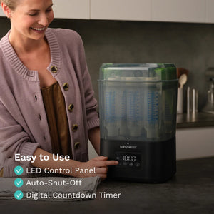 • Peace of Mind: Ultra quick run time and high capacity save you time and stress; Ensures all your feeding essentials are sterilized and safe for baby whenever you need them
